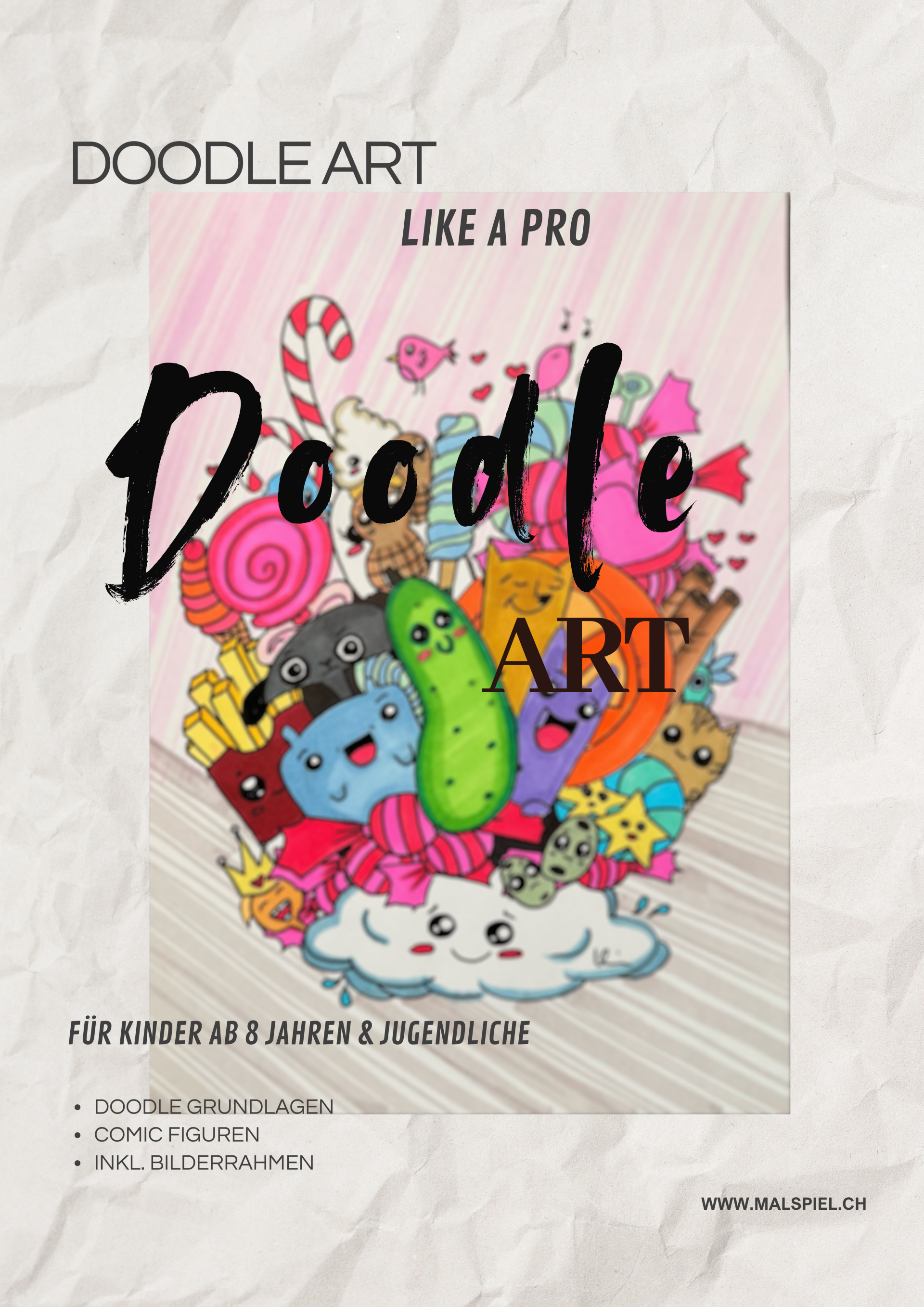 Bunte Farben, Comic-Figuren und ganz viel Fantasie – in diesem Workshop lernst du, wie du dein eigenes cooles Doodle-Kunstwerk zeichnest.